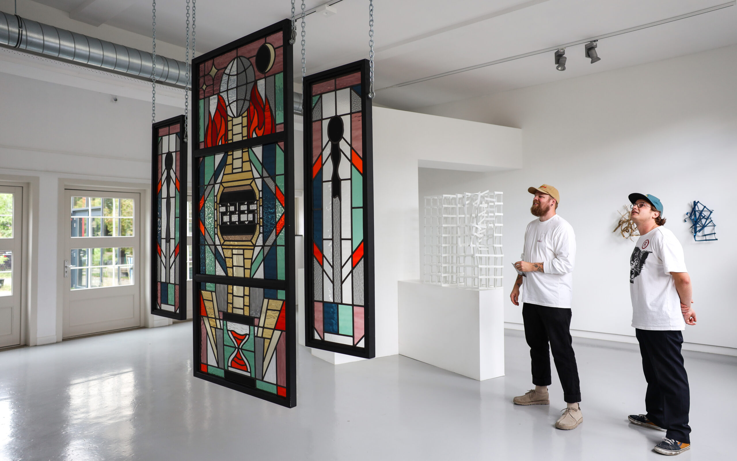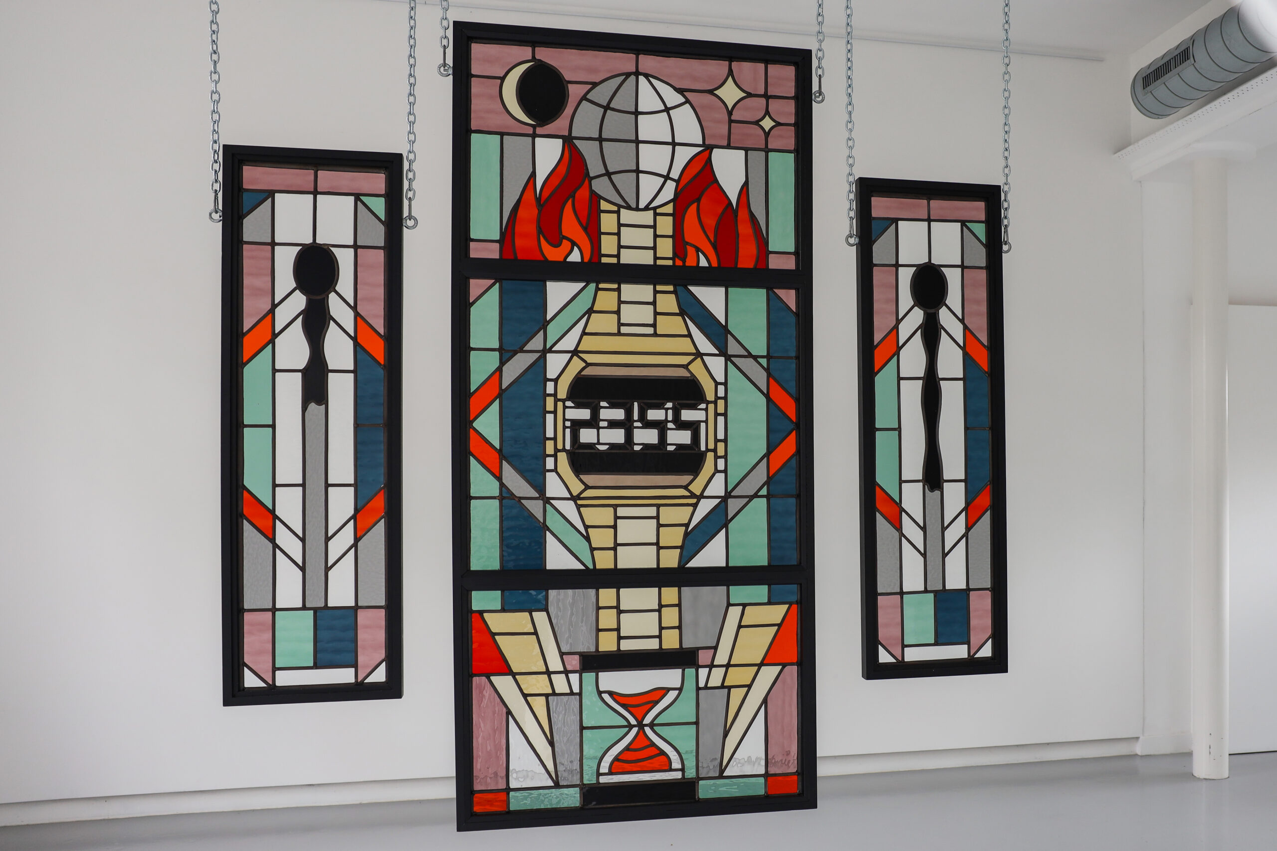 This stained glass work tells a story that is about the future, the state of the world, but also the concept of time. No time to waste!