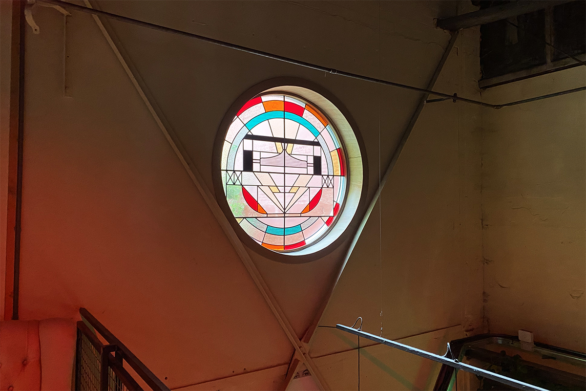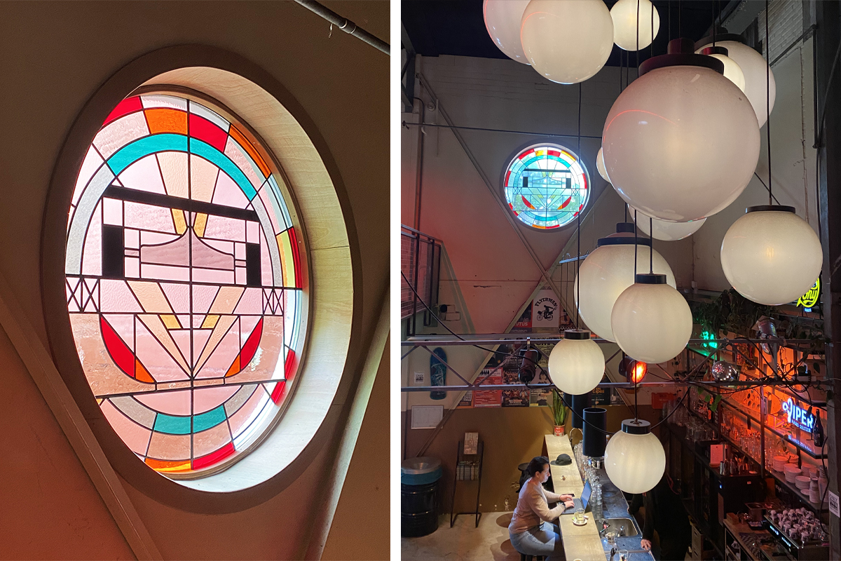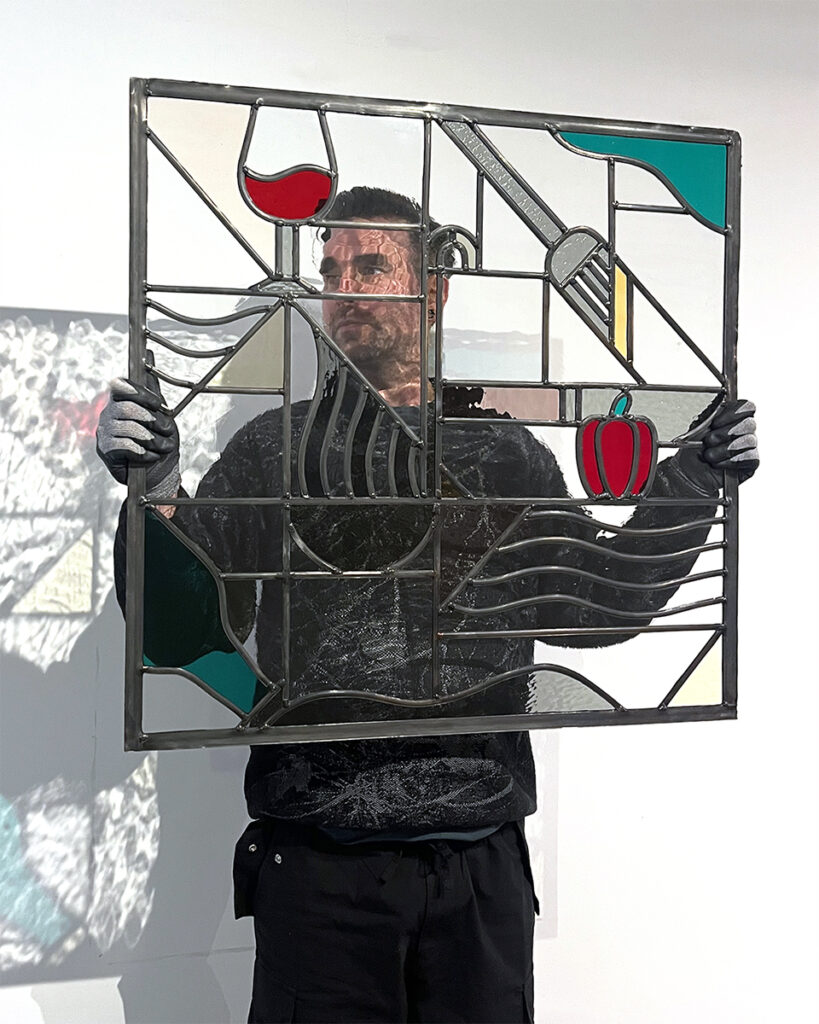 De verbouwing van Skateland Rotterdam heeft gezorgd voor een mooie nieuwe plek voor een iconisch kunstwerk. De horeca ruimte wordt inmiddels al ‘de kathedraal’ genoemd. Door de inval van veel licht en de geweldige hoge ruimte kan een glas in lood werk niet ontbreken. Het glas in lood werk met een diameter van 140 cm bevat referenties naar de skate- en jongeren cultuur.