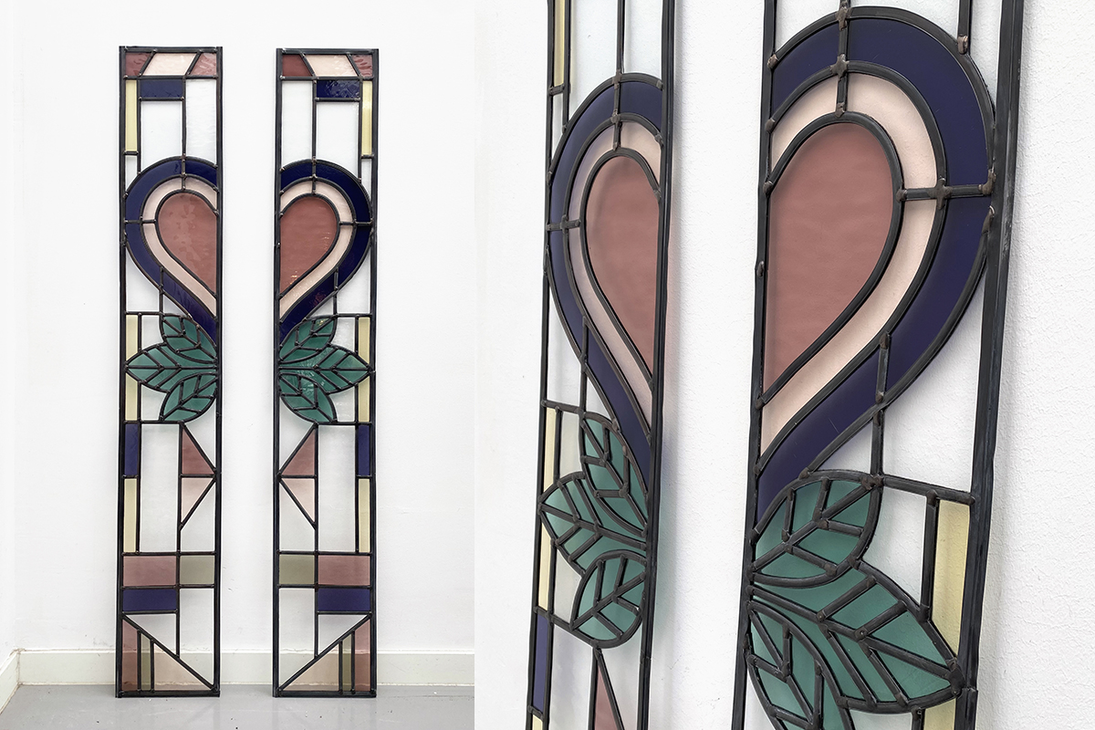 De voordeur krijgt 2 glas-in-lood ramen die samen een hart vormen.